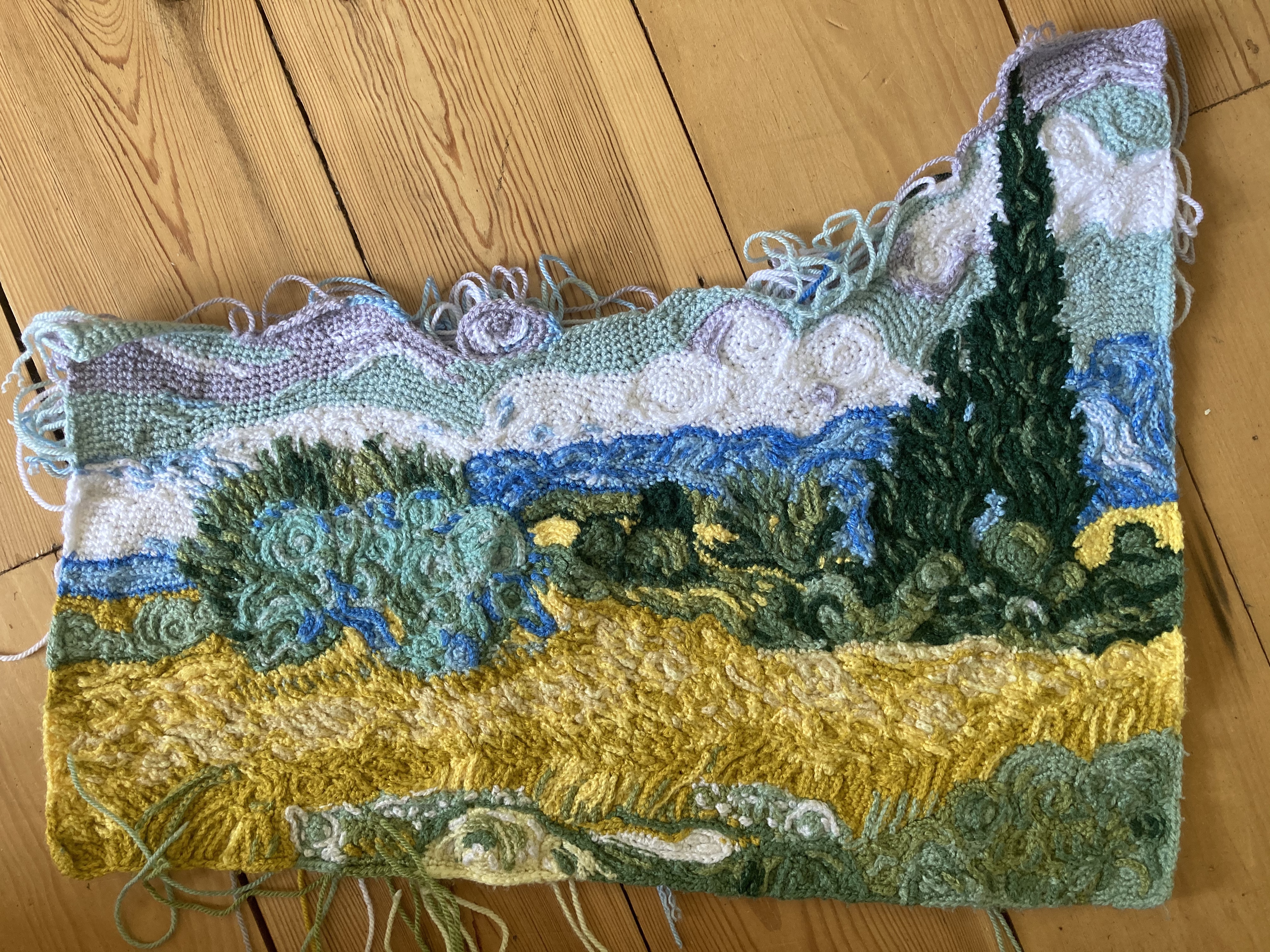 It’s even affected my crochet. Freeform crochet was far too much to tackle, and Wheatfields sat idle for some time. Instead I spent two weeks making seemingly-endless quantities of mask mates/ear protectors for the staff on my mum’s ward. I think when I finished I’d made about eighty-five. Each one took about fifteen minutes, used up yarn and buttons, and was very well received. They also didn’t require much in the way of a functioning brain, which, as I say, I’ve rather lacked lately.