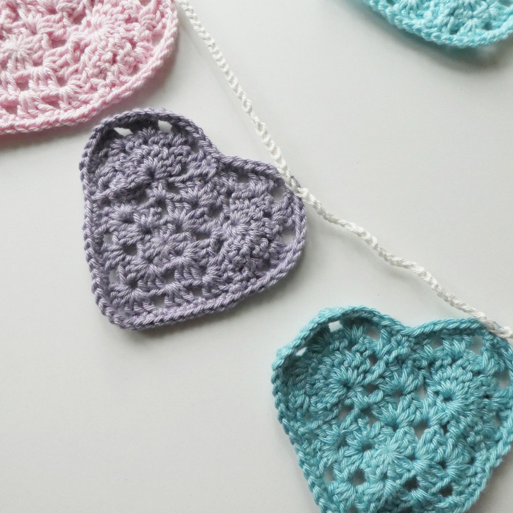 A little kitty and some heart bunting to go with the baby blanket. The cat pattern is Small Long-Legged Cat by Kristi Tullus, and I used a 3.5mm hook and scraps of the Naturals yarn. The bunting is a slightly-amended version of Cherry Heart’s Granny Heart Bunting (warning: Ravelry link), without final picots, and I used both a 3mm hook and a 4mm hook, to give different sizes of hearts.