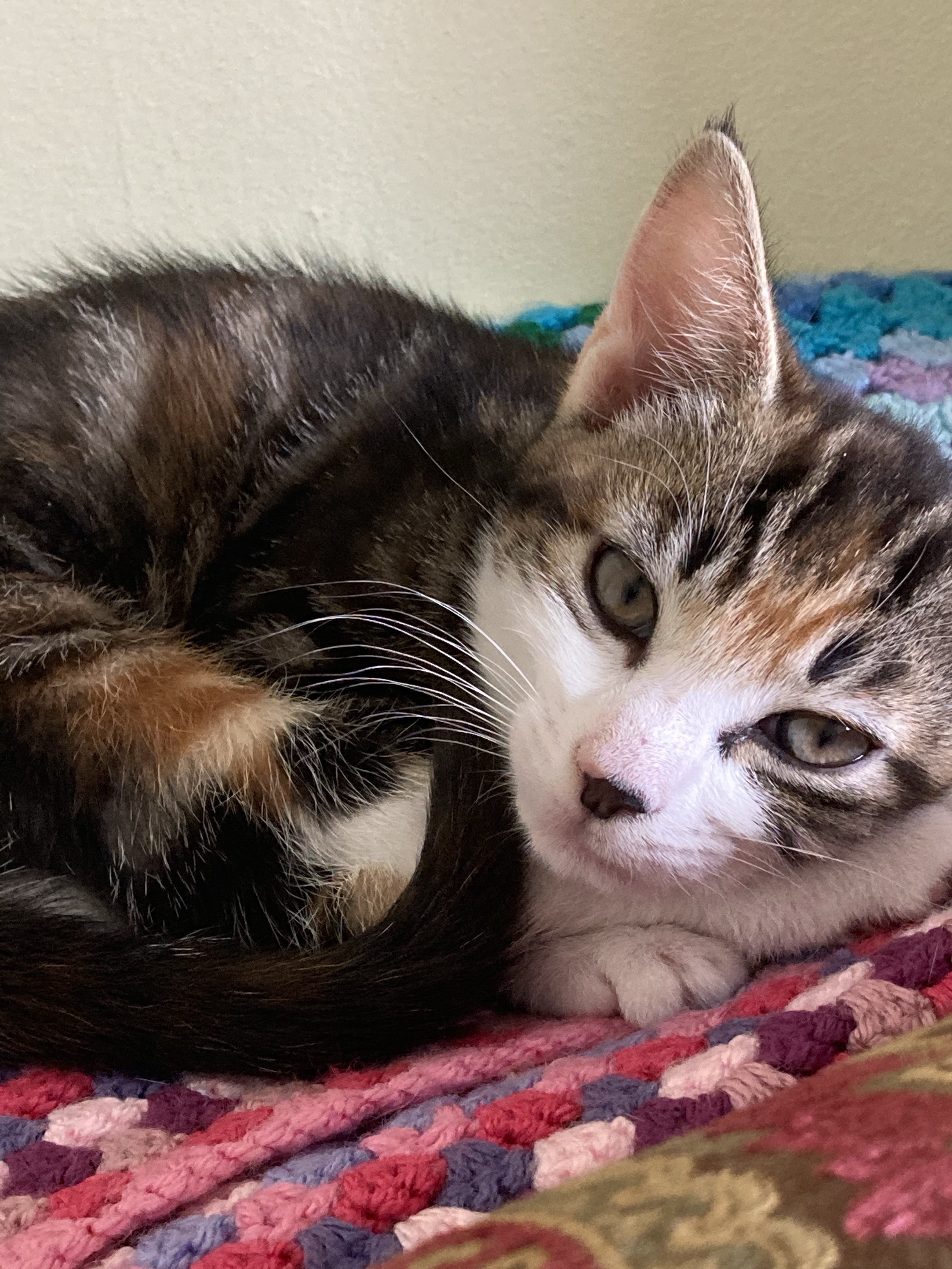 Your “Wheatfields” is looking great! I can’t wait to see the final version. Your two new family members are adorable. Tortie is my favorite color. Those two look like they can get in a bit of trouble if they want. I’m glad to hear Bumble is able to communicate to the youngsters to keep their distance.