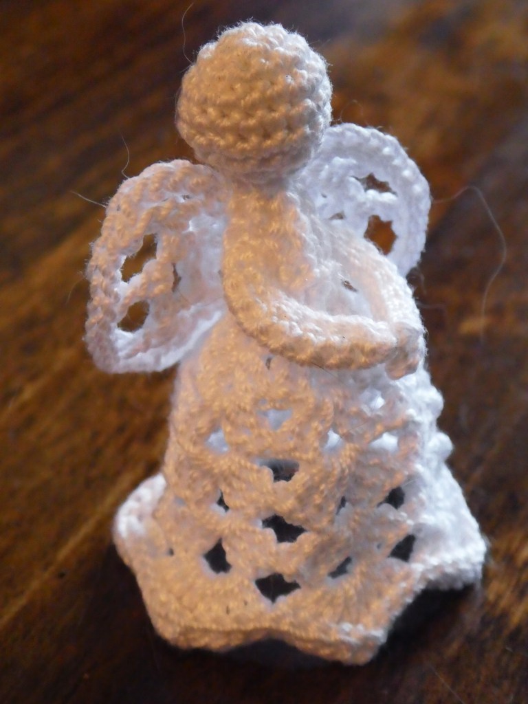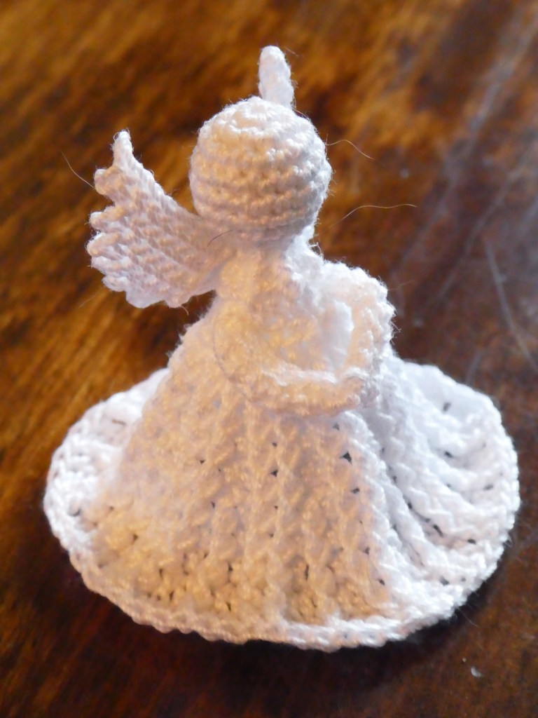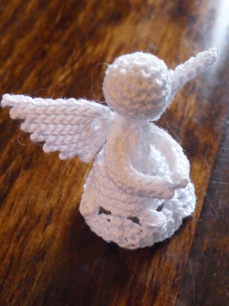 I’d been thinking of making these angels for some years. I’d encountered Oombawka Design’s crocheted angels way back in 2017 when I was making advent ornaments from a yarn advent calender. I made three of them then, in 4 ply yarn, and really enjoyed them. But I always fancied making them – and others – in thread, and finally the time was right to do so.